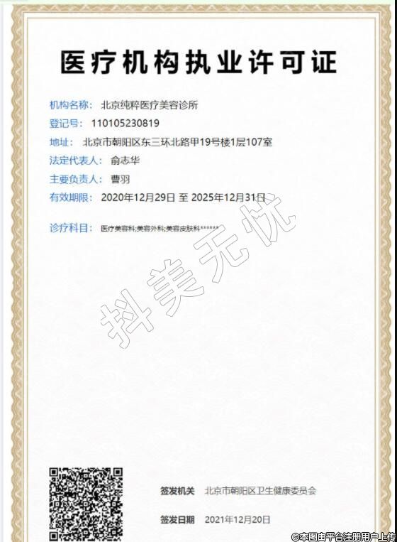 北京純粹醫(yī)療美容2015-01-12成立,地址:北京市朝陽區(qū)東三環(huán)北路甲19號樓1層107室,診療科目:醫(yī)療美容科;美容外科;美容皮膚科******