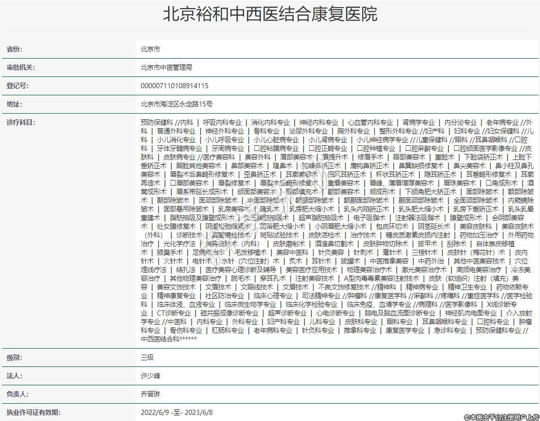 北京裕和中西醫(yī)結合康復醫(yī)院