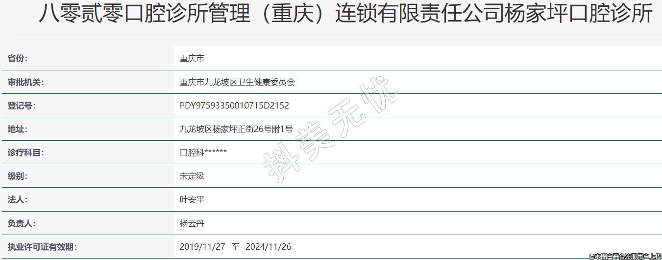 八零貳零口腔診所管理(重慶)連鎖有限責(zé)任公司楊家坪口腔診所