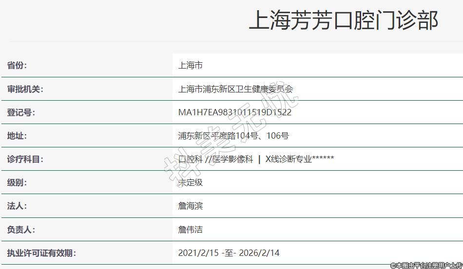 上海芳芳口腔位于上海市浦東新區(qū)平度路104號106號,金橋公園西門附近。機構(gòu)于2002年成立上海黃金芳口腔診所,經(jīng)過19年的服務(wù),在周邊贏得了較強的聲譽。2015年經(jīng)上海市浦東新區(qū)衛(wèi)生局批準(zhǔn),升級為口腔門診部,現(xiàn)有六臺牙椅,2020年11月被鑫齒口腔連鎖收購。