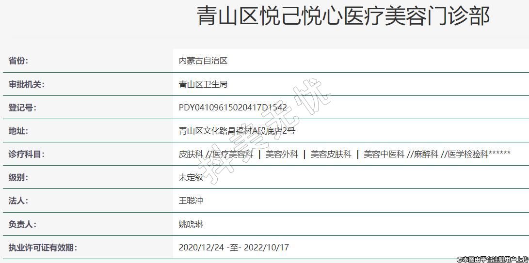 青山區(qū)悅己悅心醫(yī)療美容門(mén)診部