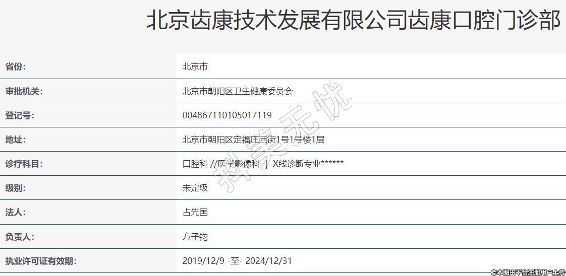 北京齒康技術發(fā)展有限公司齒康口腔門診部