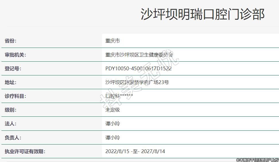 審批機關(guān):重慶市沙坪壩區(qū)衛(wèi)生健康委員會