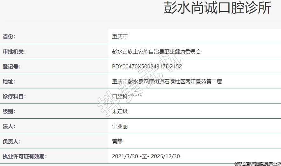 執(zhí)業(yè)許可證有效期:2021/3/30 -至- 2025/12/30