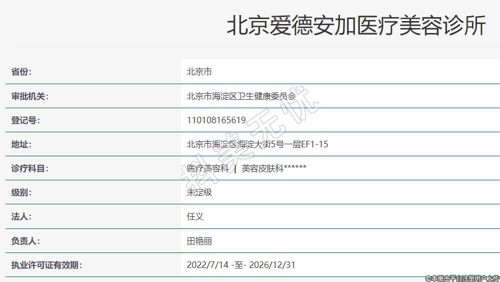 北京愛德安加醫(yī)療美容2021-11-10成立,地址:北京市海淀區(qū)海淀大街5號一層EF1-15,診療科目:醫(yī)療美容科 | 美容皮膚科******