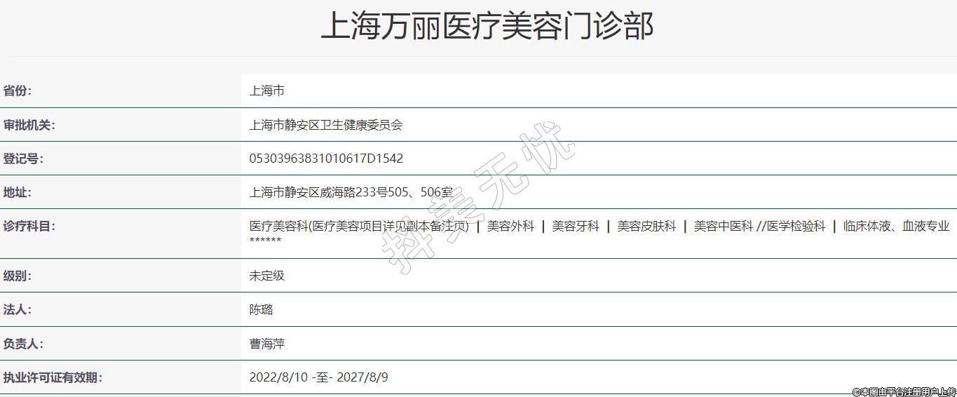 診療科目:醫(yī)療美容科(醫(yī)療美容項目詳見副本備注頁) | 美容外科 | 美容牙科 | 美容皮膚科 | 美容中醫(yī)科 //醫(yī)學檢驗科 | 臨床體液、血液專業(yè)******