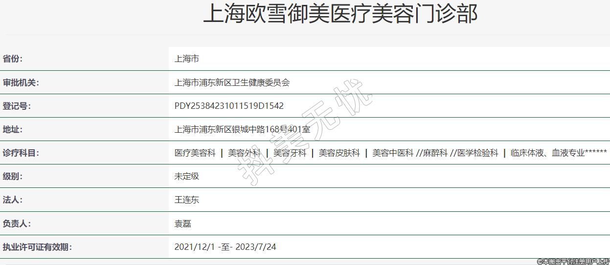 上海歐雪御美醫(yī)療美容門診部