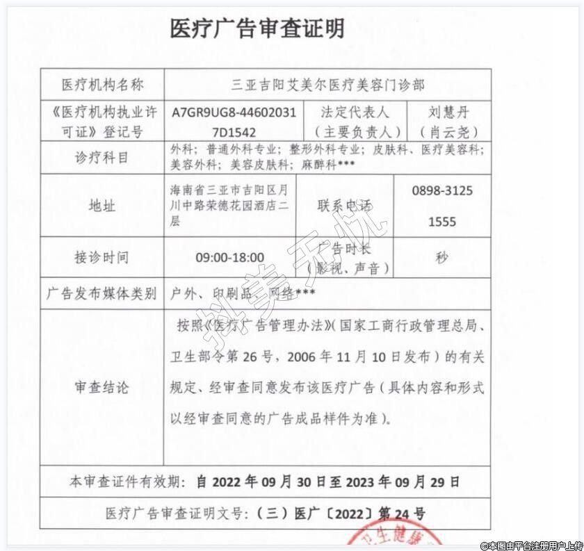 機(jī)構(gòu)名稱:三亞吉陽(yáng)艾美爾醫(yī)療美容門(mén)診部