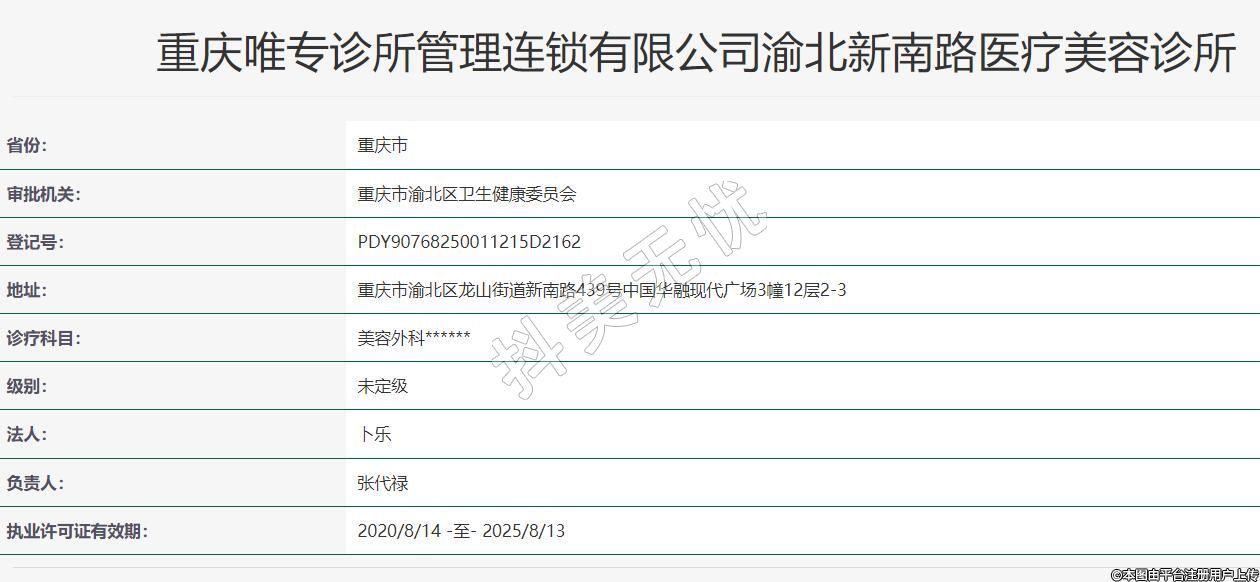 重慶唯專診所管理連鎖有限公司渝北新南路醫(yī)療美容診所