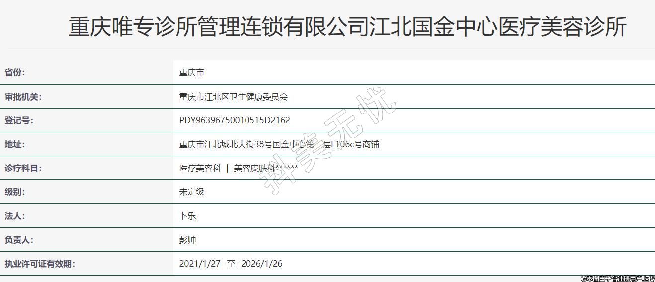 重慶唯專診所管理連鎖有限公司江北國(guó)金中心醫(yī)療美容診所