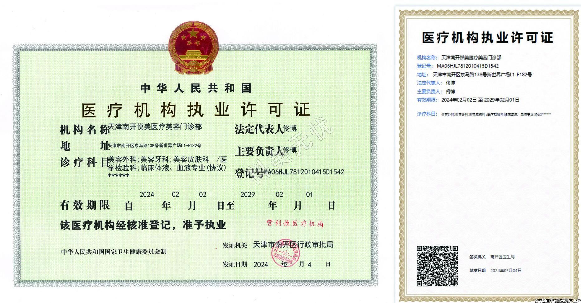 發(fā)證機關:天津市南開區(qū)行政審批局