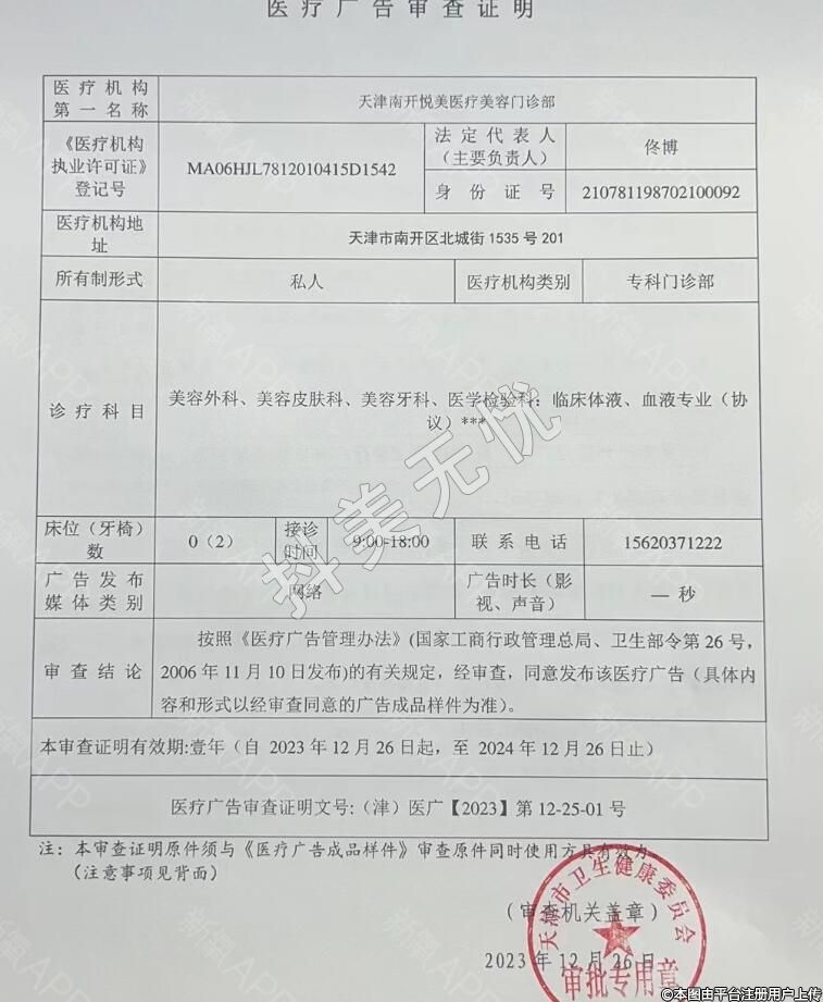 機構名稱:天津南開悅美醫(yī)療美容門診部