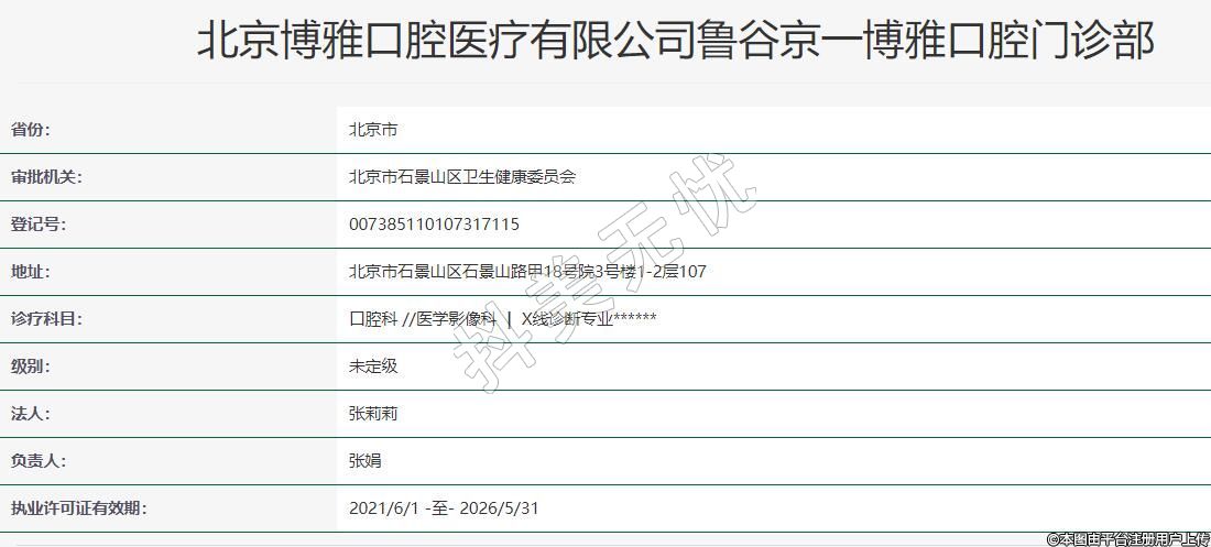 北京博雅口腔醫(yī)療有限公司魯谷京一博雅口腔門診部
