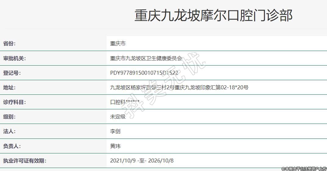 重慶九龍坡摩爾口腔2021-06-25成立,地址:九龍坡區(qū)楊家坪西郊三村2號重慶九龍坡印象匯第02-18*20號,診療科目:口腔科******