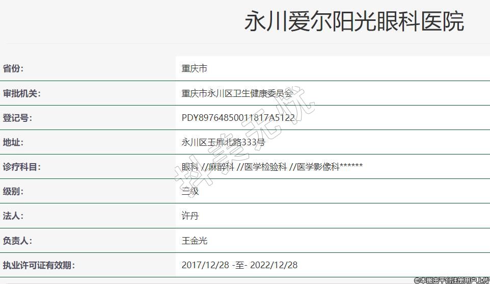 永川愛爾陽光眼科2016-05-17成立,地址:永川區(qū)玉屏北路333號,診療科目:眼科 //麻醉科 //醫(yī)學檢驗科 //醫(yī)學影像科******
