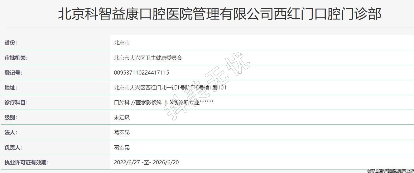 北京科智益康口腔2021-03-19成立,地址:北京市大興區(qū)西紅門北一街1號院甲6號樓1層101,診療科目:口腔科 //醫(yī)學(xué)影像科 | X線診斷專業(yè)******