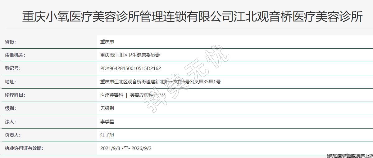 重慶小氧醫(yī)療美容診所管理連鎖有限公司江北觀音橋醫(yī)療美容診所