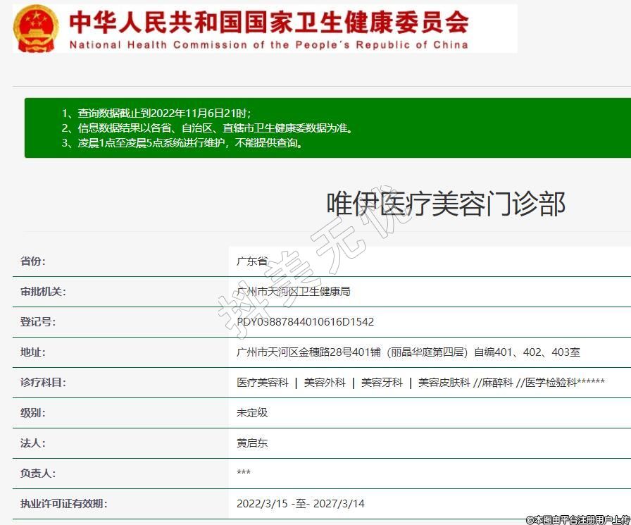 廣州唯伊醫(yī)療美容 ,是一家經(jīng)國家衛(wèi)生部正式批準開業(yè),廣州市衛(wèi)生局屬下的一家正規(guī)的專業(yè)整形醫(yī)療機構,證件齊全,是家集研發(fā)、生產(chǎn)、健康管理、醫(yī)學美容等服務為一體的高端醫(yī)學美容服務機構。