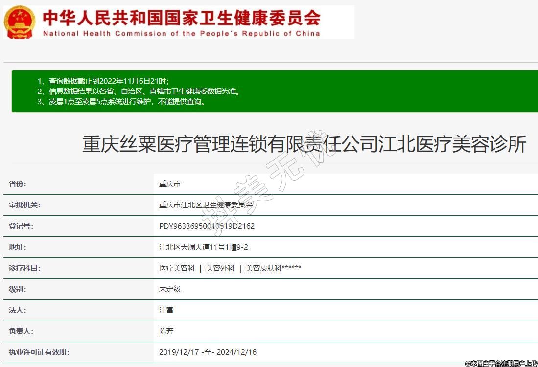 重慶絲粟醫(yī)療管理連鎖有限責任公司江北醫(yī)療美容診所