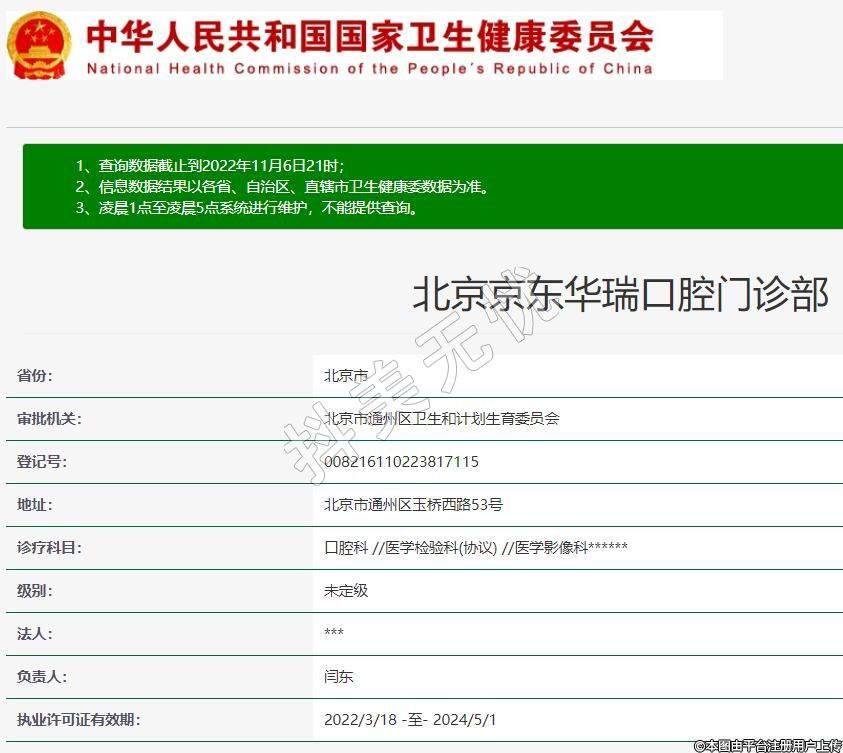 北京京東華瑞口腔2004-05-11成立,地址:北京市通州區(qū)玉橋西路53號,診療科目:口腔科 //醫(yī)學檢驗科(協(xié)議) //醫(yī)學影像科******