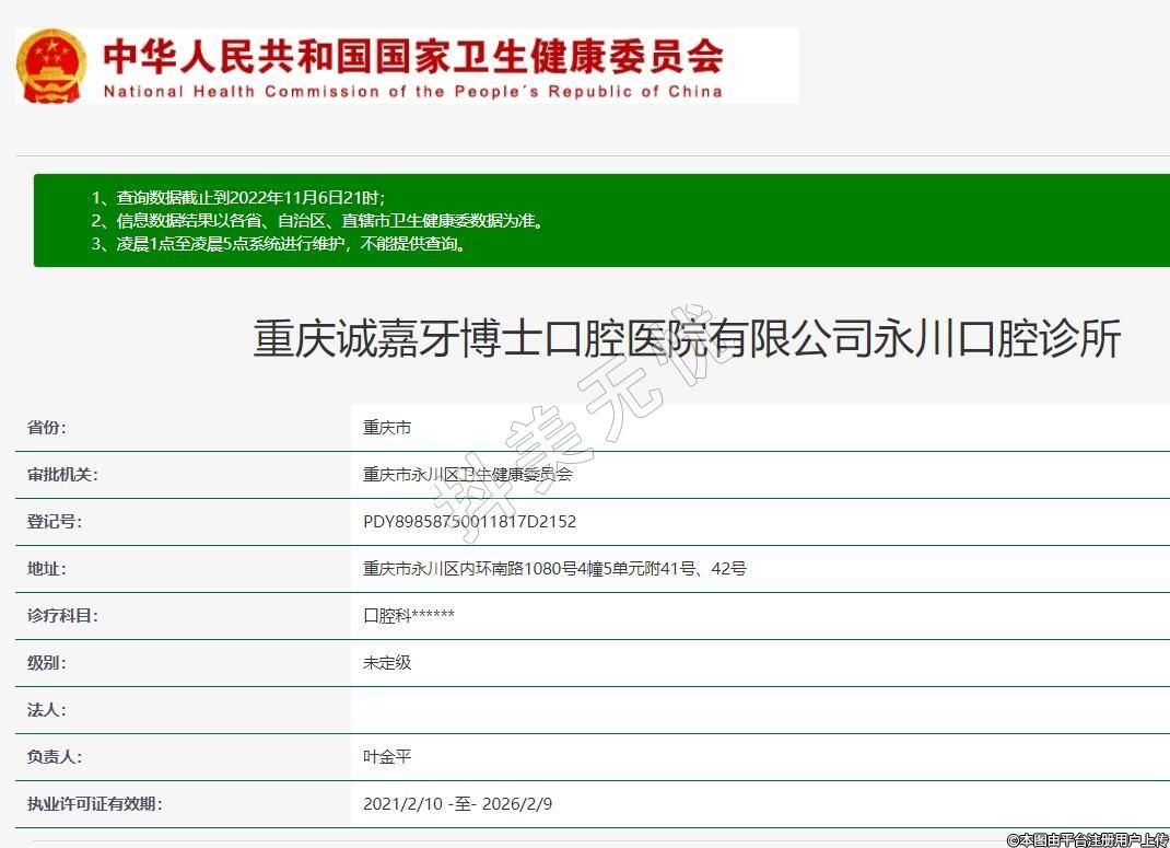 重慶誠嘉牙博士口腔(永川店)2020-11-19成立,地址:重慶市永川區(qū)內(nèi)環(huán)南路1080號4幢5單元附41號、42號,診療科目:口腔科******
