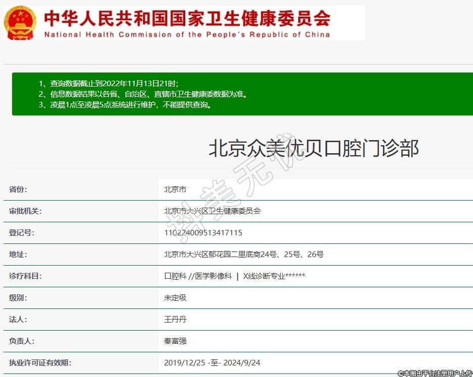 北京眾美優(yōu)貝口腔2019-03-12成立,地址:北京市大興區(qū)郁花園二里底商24號、25號、26號,診療科目:口腔科 //醫(yī)學影像科 | X線診斷專業(yè)******