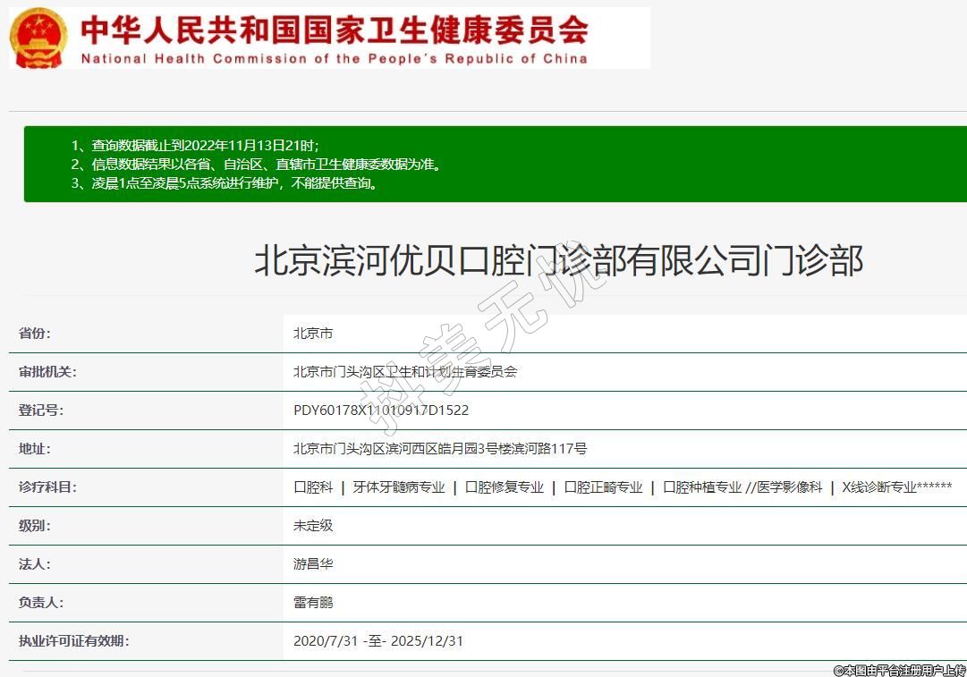 北京濱河優(yōu)貝口腔門診部有限公司門診部