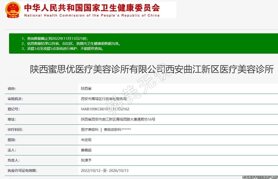 陜西蜜思優(yōu)醫(yī)療美容診所有限公司西安曲江新區(qū)醫(yī)療美容診所