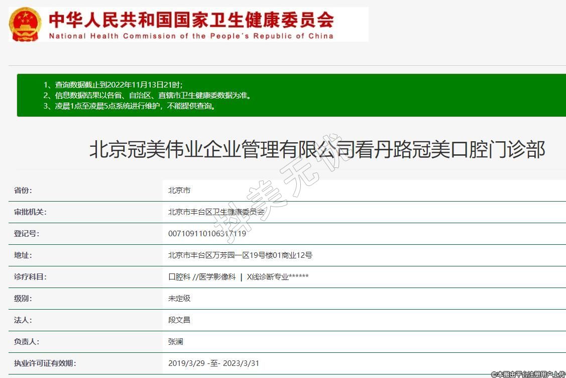 北京冠美偉業(yè)企業(yè)管理有限公司看丹路冠美口腔門診部
