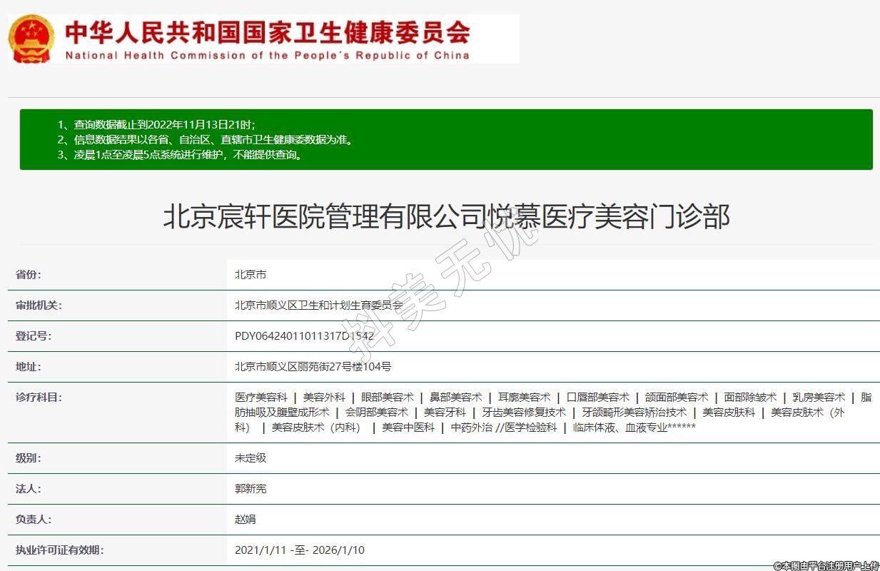 北京宸軒醫(yī)院管理有限公司悅慕醫(yī)療美容門診部