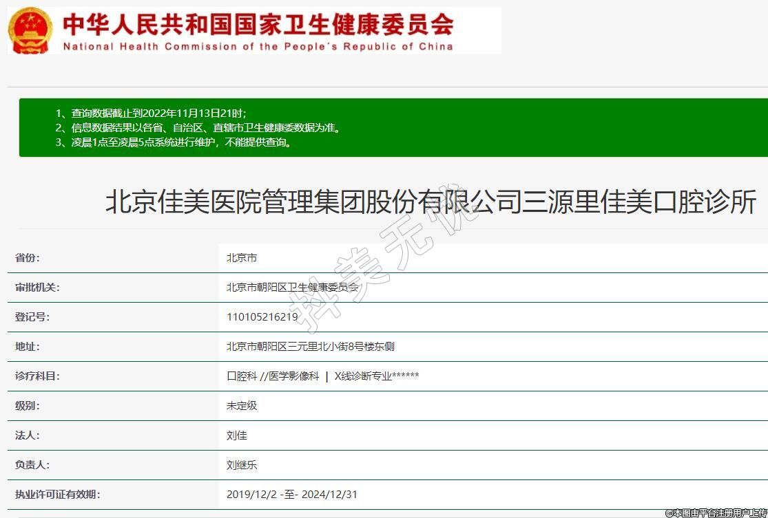 北京佳美醫(yī)院管理集團(tuán)股份有限公司三源里佳美口腔診所