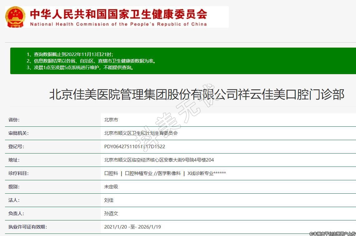 北京佳美醫(yī)院管理集團股份有限公司祥云佳美口腔門診部