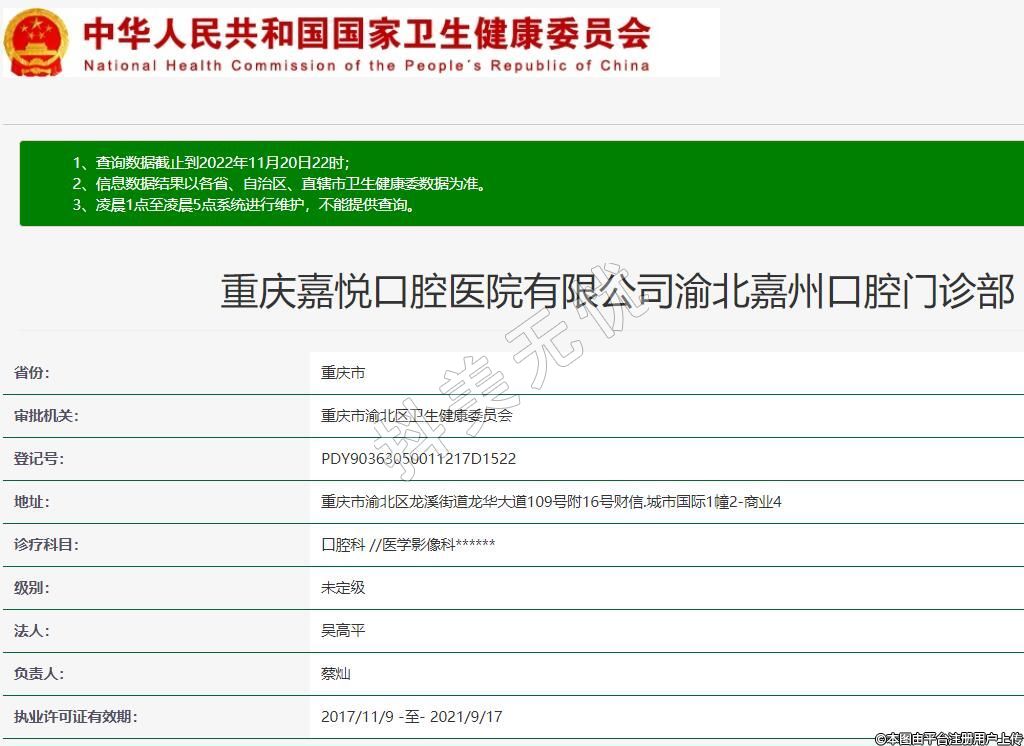 重慶嘉悅口腔醫(yī)院有限公司渝北嘉州口腔門診部