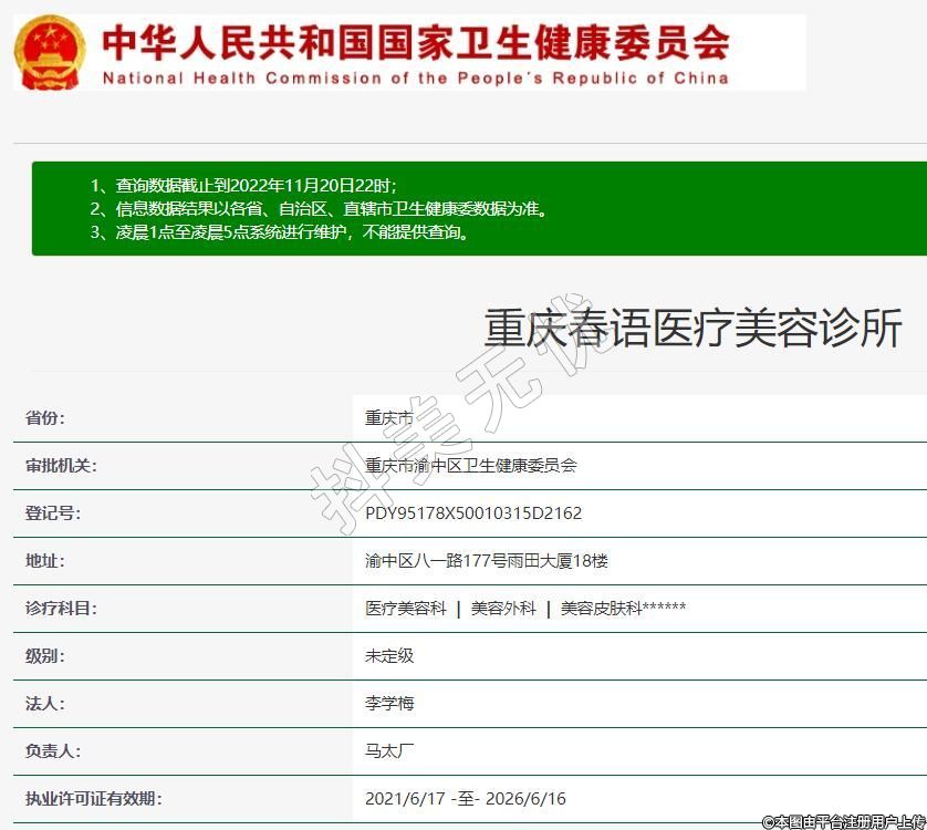 審批機關(guān):重慶市渝中區(qū)衛(wèi)生健康委員會