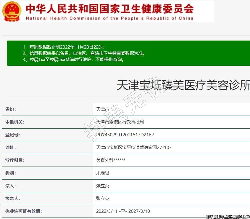 天津?qū)氎嬲槊泪t(yī)療美容2017-02-13成立,地址:天津市寶坻區(qū)寶平街道馨逸家園27-107,診療科目:美容外科******