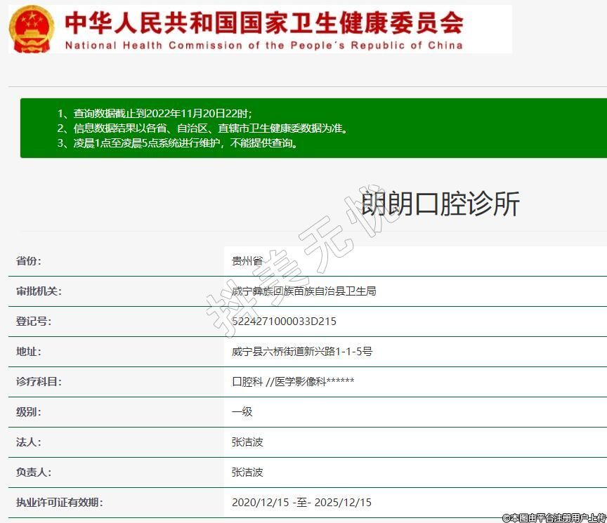威寧朗朗口腔2020-06-24成立,地址:威寧縣六橋街道新興路1-1-5號,診療科目:口腔科 //醫(yī)學影像科******