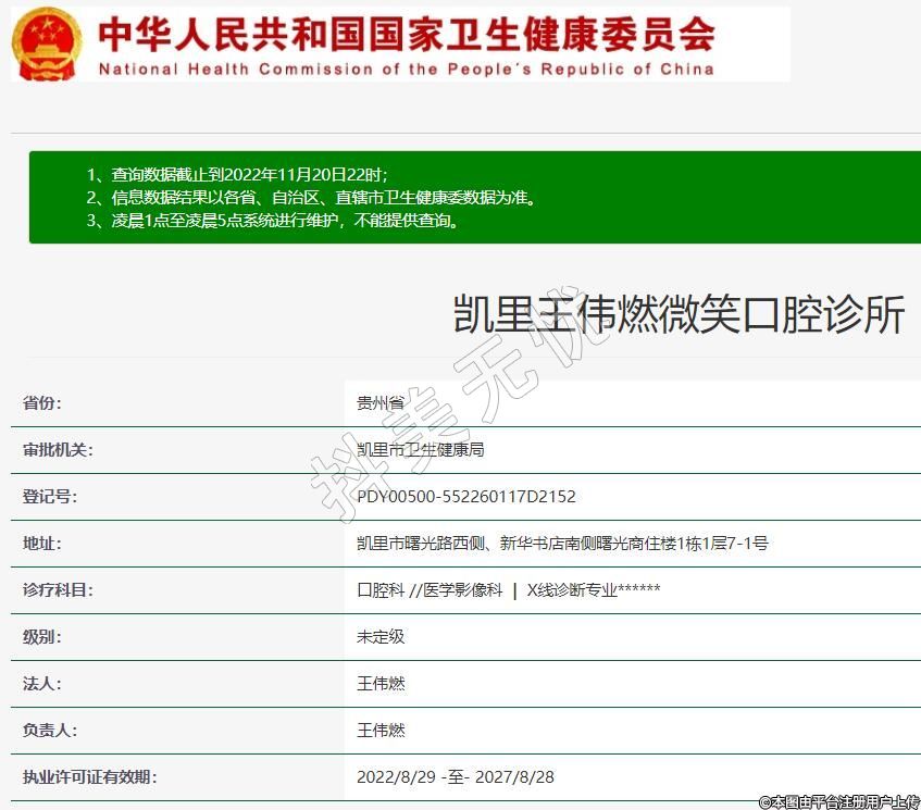 凱里王偉燃微笑口腔2022-05-25成立,地址:凱里市曙光路西側(cè)、新華書店南側(cè)曙光商住樓1棟1層7-1號,診療科目:口腔科 //醫(yī)學(xué)影像科 | X線診斷專業(yè)******