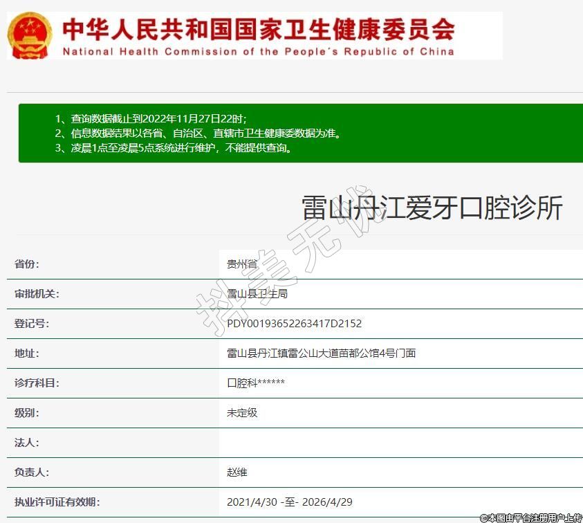 雷山丹江愛牙口腔2016-01-22成立,地址:雷山縣丹江鎮(zhèn)雷公山大道苗都公館4號門面,診療科目:口腔科******