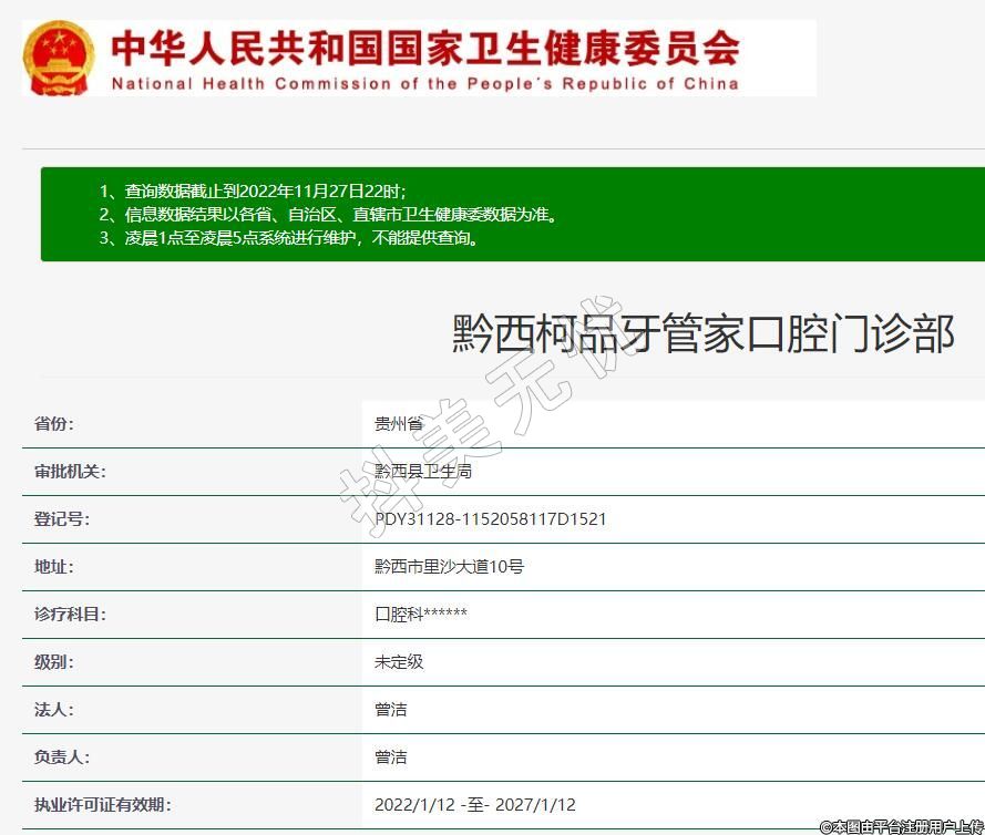 黔西柯品牙管家口腔地址:黔黔西柯品牙管家口腔門診部西市里沙大道10號,診療科目:口腔科******