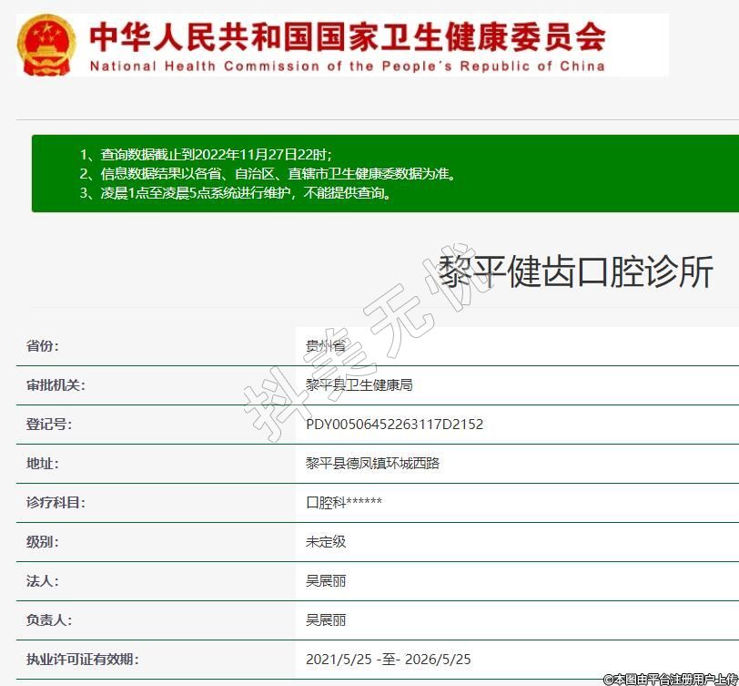 黎平健齒口腔2010-11-18成立,診療科目:口腔科******