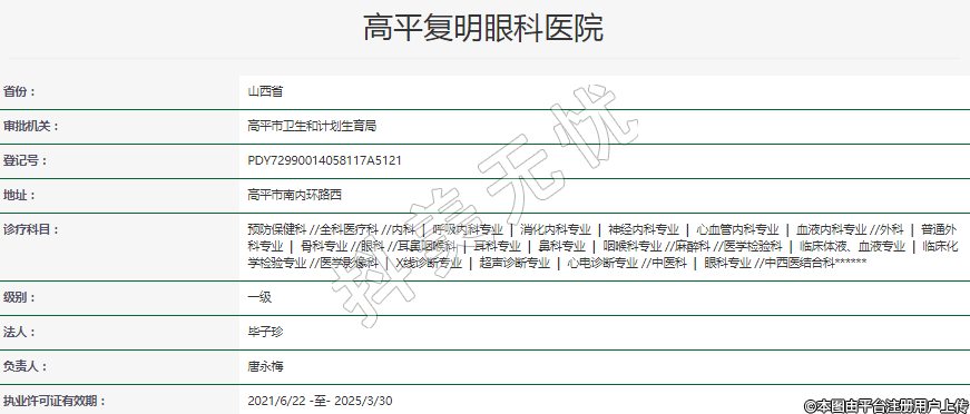 執(zhí)業(yè)許可證有效期:2021/6/22 -至- 2025/3/30