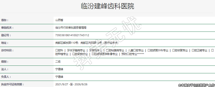 執(zhí)業(yè)許可證有效期:2021/9/27 -至- 2026/9/26