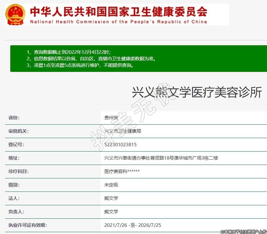 興義熊文學醫(yī)療美容,診療科目:醫(yī)療美容科******