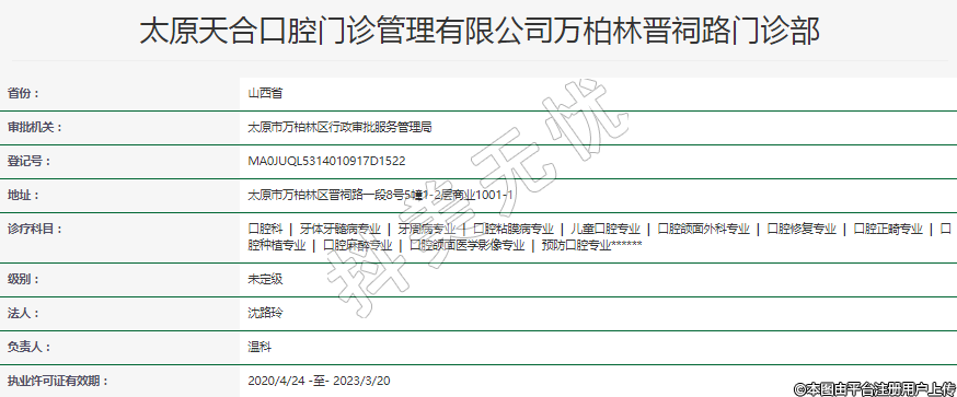 太原天合口腔門診管理有限公司萬柏林晉祠路門診部