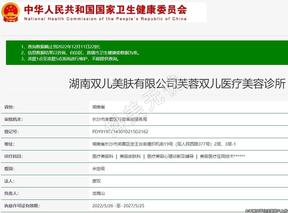 湖南雙兒美膚有限公司芙蓉雙兒醫(yī)療美容診所