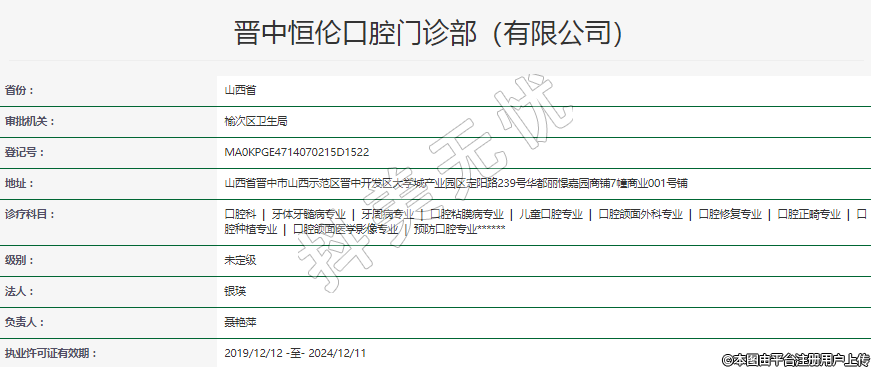 執(zhí)業(yè)許可證有效期:2019/12/12 -至- 2024/12/11