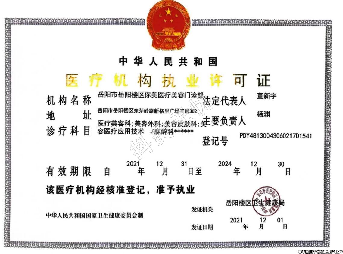 機(jī)構(gòu)名稱:岳陽市岳陽樓區(qū)你美醫(yī)療美容門診部