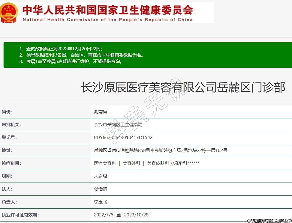 長(zhǎng)沙原辰醫(yī)療美容有限公司岳麓區(qū)門(mén)診部