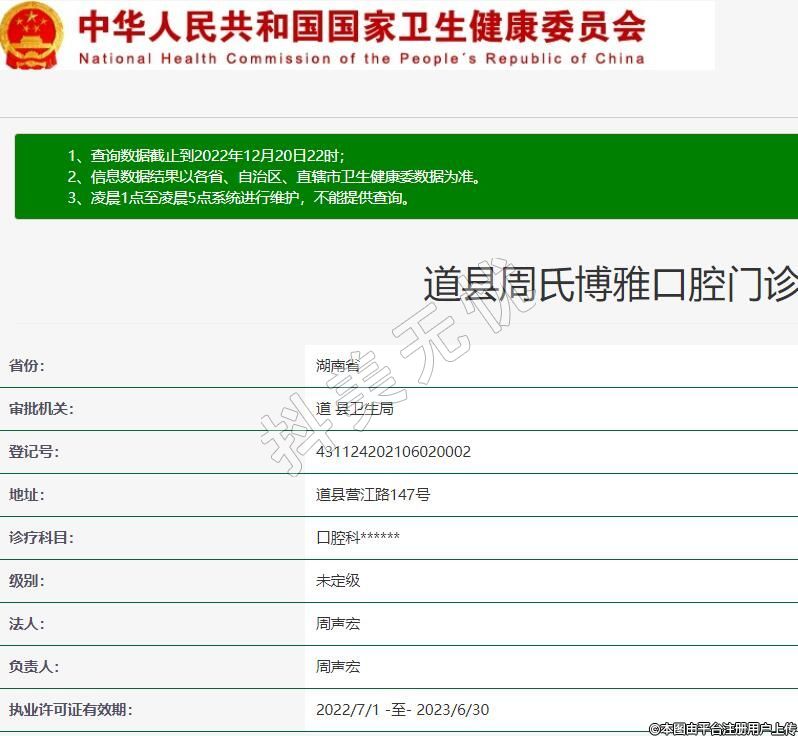 道縣周氏博雅口腔,診療科目:口腔科******
