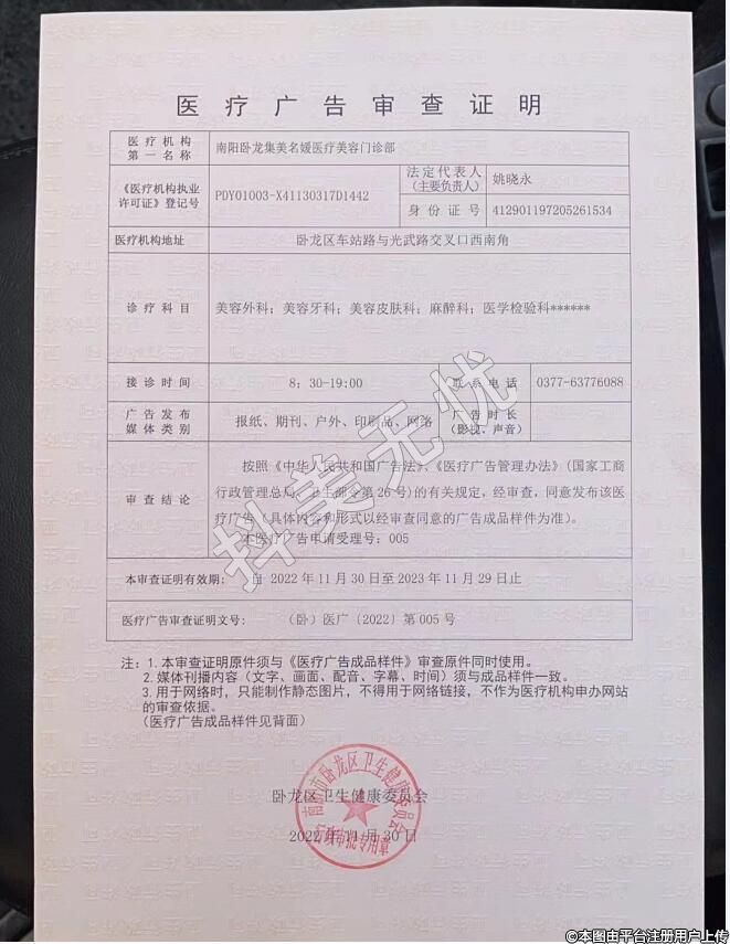 審批機(jī)關(guān):南陽市臥龍區(qū)衛(wèi)生健康委員會